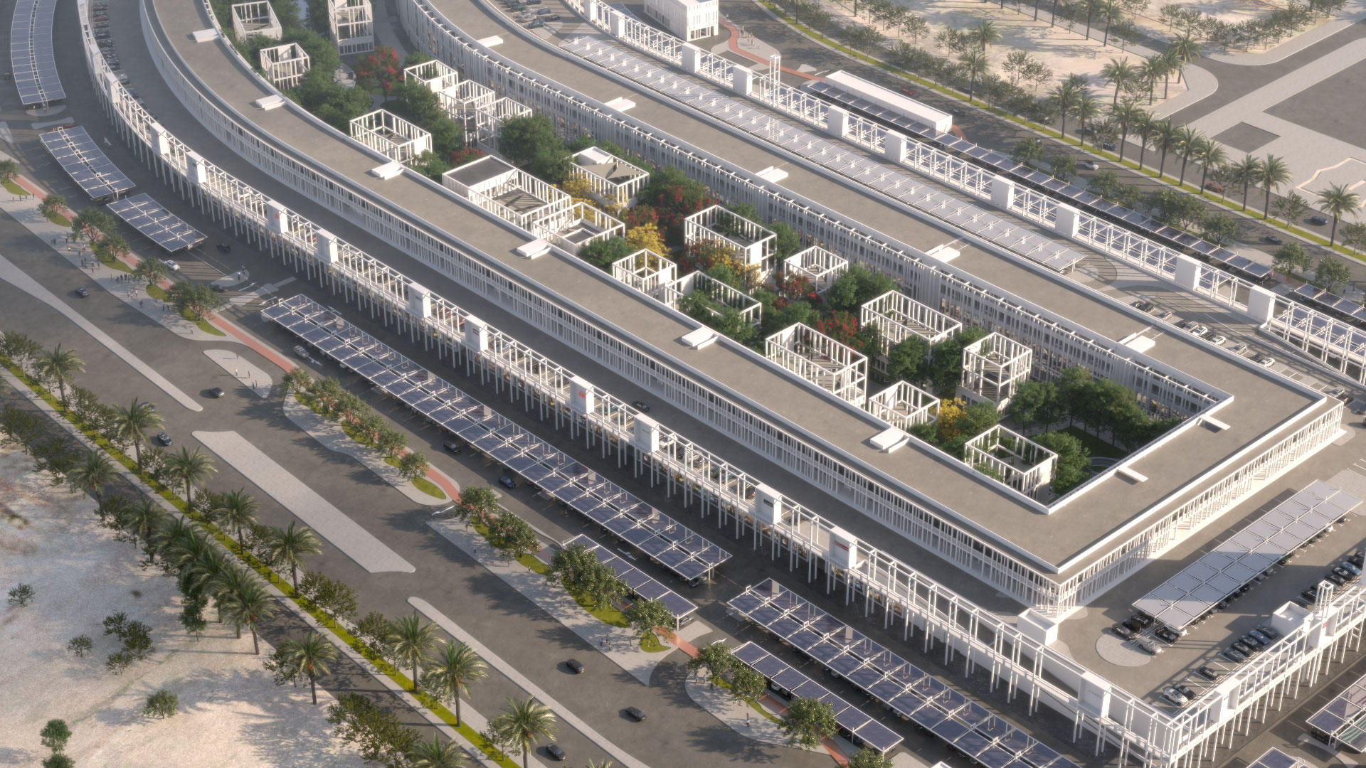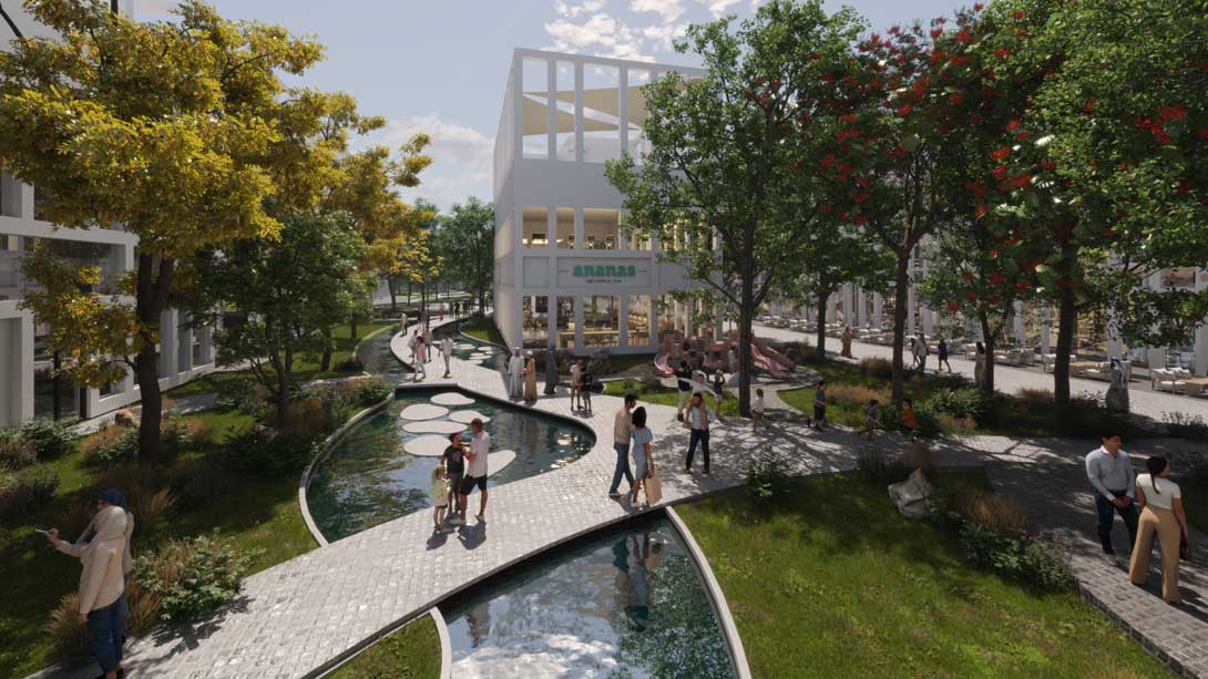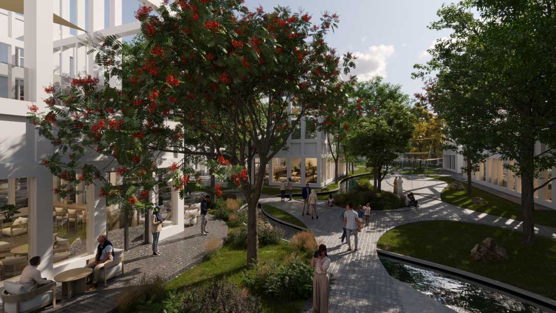 “The courtyard is the vibrant heart of Jaber Mall, a botanical-style garden with greenery, shaded walkways, and water features that create a cool microclimate. Blending leisure, dining, and retail with family-friendly spaces, pavilions, and terraces, it offers a unique indoor–outdoor experience for relaxation, socializing, and events.”